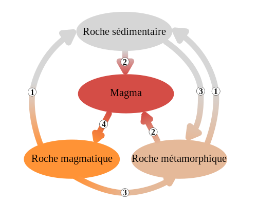 Les Roches sont des matériaux inertes, durs et cohérents, parfois plastiques comme les Argiles, meubles comme les Sables, voire liquides ou gazeux comme le Pétrole ou le Gaz naturel. Ce sont les matériaux constitutifs de l’Écorce terrestre. On distingue en premier chef les roches exogènes qui se forment et se déposent à la surface de la Terre et les roches endogènes qui sont formées ou transformées en profondeur sous des conditions locales de pression et de température particulières. Ces dernières sont soumises à des phénomènes de cristallisation et présentent des Minéraux visibles ou non (Microcristaux). La classification des Roches est étudiée par la pétrographie. On distingue parmi les roches exogènes, les Roches sédimentaires et parmi les roches endogènes les Roches magmatiques (Roches volcaniques ou Roches cristallines) et les Roches métamorphiques.