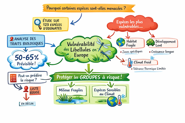 Une étude sur 123 espèces montre que leur vulnérabilité dépend de leur habitat, de leur cycle de vie et de leurs préférences thermiques. Ces résultats aident à mieux comprendre les effets des activités humaines comme le changement climatique. Ils permettent aussi de cibler plus efficacement les actions de conservation.