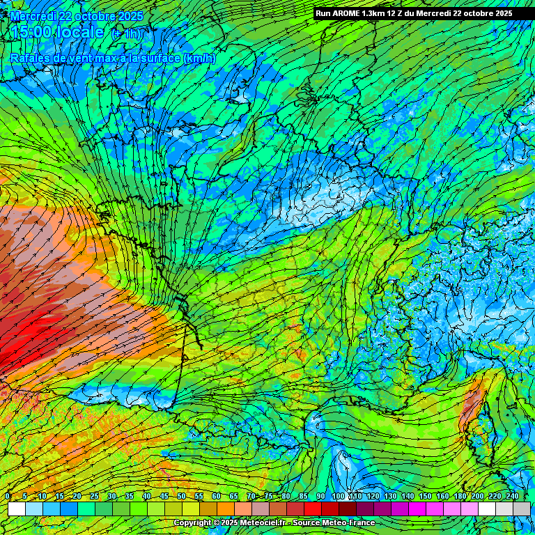 Rafale maximale : 87,1 km/h (5-6h : 23 octobre) (Niort Souché)