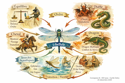 - Chez des Amérindiens, les Libellules symbolisent le changement rapide, à l’origine des dragons.