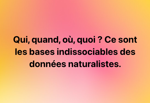 L’observateur, la date, la détermination et la localité sont autant d’ingrédients qui composent la qualité d’une donnée et lui donne son intégrité.