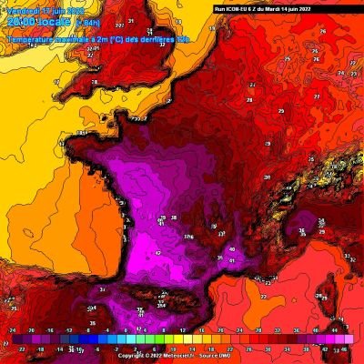 En 2022, les chaleurs sont très précoces et on note déjà 33°C à Toulouse, ainsi que près de 30°C à Paris le 18 mai. La sécheresse déjà constatée s'aggrave. Plus de 30 jours ce printemps sont au-dessus de la normale. En mai les températures en France sont de 3,3°C au-dessus des normales. Le précédent record datait de 2011 et ne parlait que d'un excédent de 1,9°C. Il était de 1,7°C en mai 1999, troisième valeur enregistrée dans les maxima. Mi juin sont programmées des journées très chaudes de manière particulièrement précoce : des chaleurs comme un été très chaud en cette fin de printemps ! Des 40°C généralisés sur une part congrue du pays.