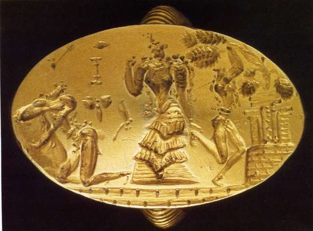 1550-1100 BC - Anneau d'or du Minoen tardif découvert à Knossos en Crête représentant deux Libellules