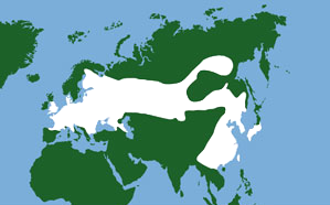 Eurasiatique : depuis l'Angleterre et l'Europe occidentale au Japon. Originaire de Chine par le biais d'espèces ancestrales, l'espèce est parvenue en Europe au cours de la dernière glaciation au cours du Würm.