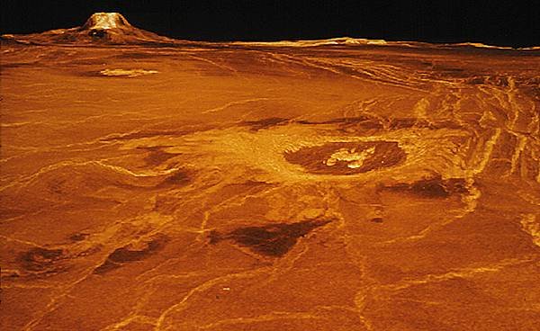 Vénus est une planète rocheuse, jumelle par ses dimensions de la Terre. Elle a une forte atmosphère formée de gaz carbonique et des températures passant les 400°C (entre 446 et 482°C, 464°C en moyenne ; effet de serre de plus 505°C contre plus 33°C seulement pour la Terre ; il fait plus chaud que sur Mercure). Les conditions sont trop chaudes pour l’existence de la Vie en raison d’un intense effet de serre, de plus on y rencontre des pluies d’acide sulfurique. On pense que jadis elle a pu réunir des conditions favorables de manière provisoire[1].
