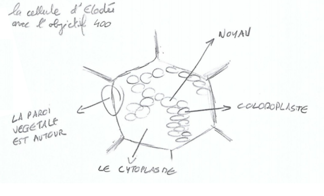 Légende à mettre en minuscule, visualiser le titre, le grossissement est mal présenté, les flèches doivent désigner les objets et non l’inverse, à la règle, organiser mieux la légende, fermer les formes, beaucoup d’irrégularités, quelques caractéristiques schématiques, noyau mal observé, orthographe… Résultat : 05/20 (Insuffisant)