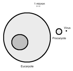 Les bactéries ne possèdent pas de noyau, ce sont des Procaryotes. Néanmoins elles possèdent l’ADN nécessaire à la direction de leur structure et de leur fonctionnement sous une forme circulaire directement dans le cytoplasme. Elles sont nettement plus petites que les Eucaryotes. Leur structure plus simple ressemble à celle de certains organites comme les chloroplastes ou les mitochondries. Ce type de structure plus primitive se trouve plus proche des origines de la Vie dans le cadre de l’évolution du vivant.