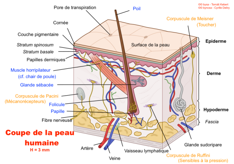 Les deux images suivantes montrent la diversité possible des cellules spécialisées d’abord chez un végétal, le Houx, ensuite chez un animal, l’Homme et plus exactement la peau humaine. Elles ne sont pas à apprendre, mais elles viennent en exemple et illustration de la diversité des cellules spécialisés chez les pluricellulaires.