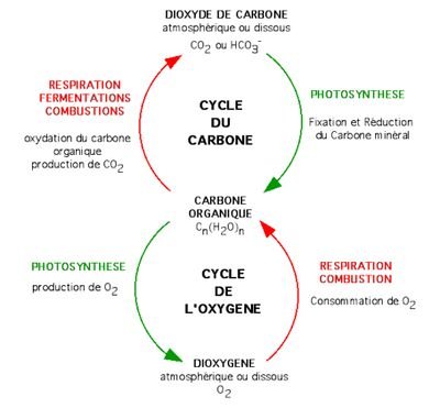 La réaction inverse est tout aussi célèbre, c’est une réaction du catabolisme : la respiration : glucose + 02 donne grace à l’action de nombreuses protéines enzymatiques du CO2 + H2O et produit de l’énergie utilisable par la cellule.