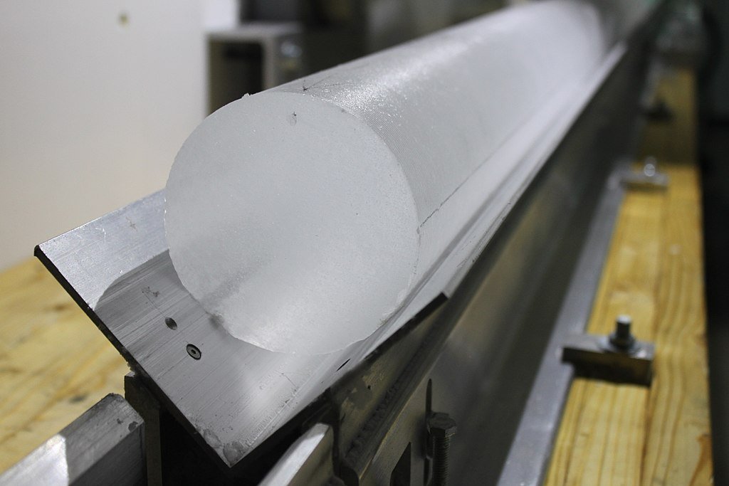 Grâce aux techniques de forage, les glaciologues peuvent prélever, sur plusieurs milliers de mètres d’épaisseur de glace, de longs cylindres qu’on appelle carottes.